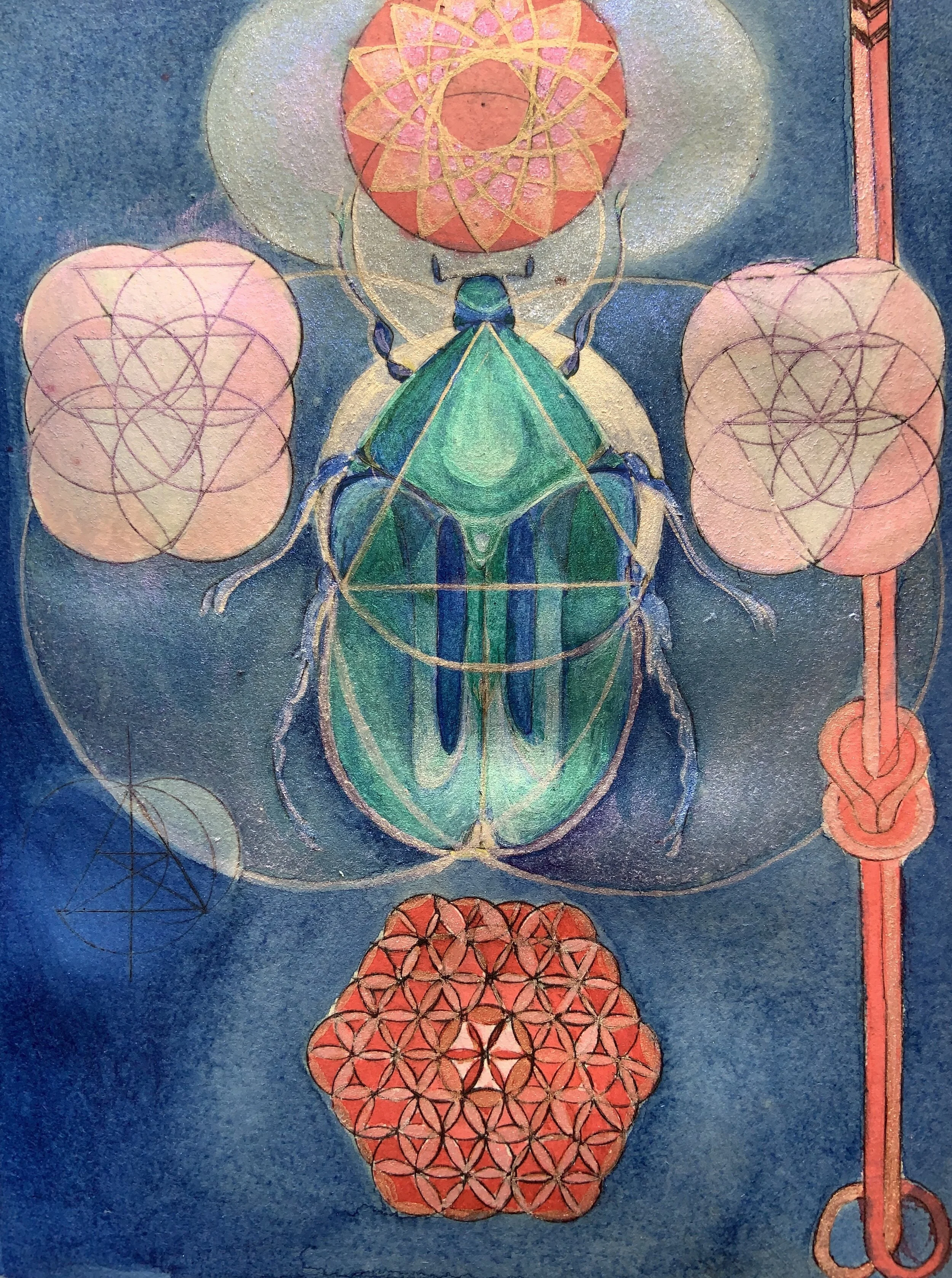Rose Beetle, acetate print with ink and iridescent pigments, approx. 8" x. 10" SOLD