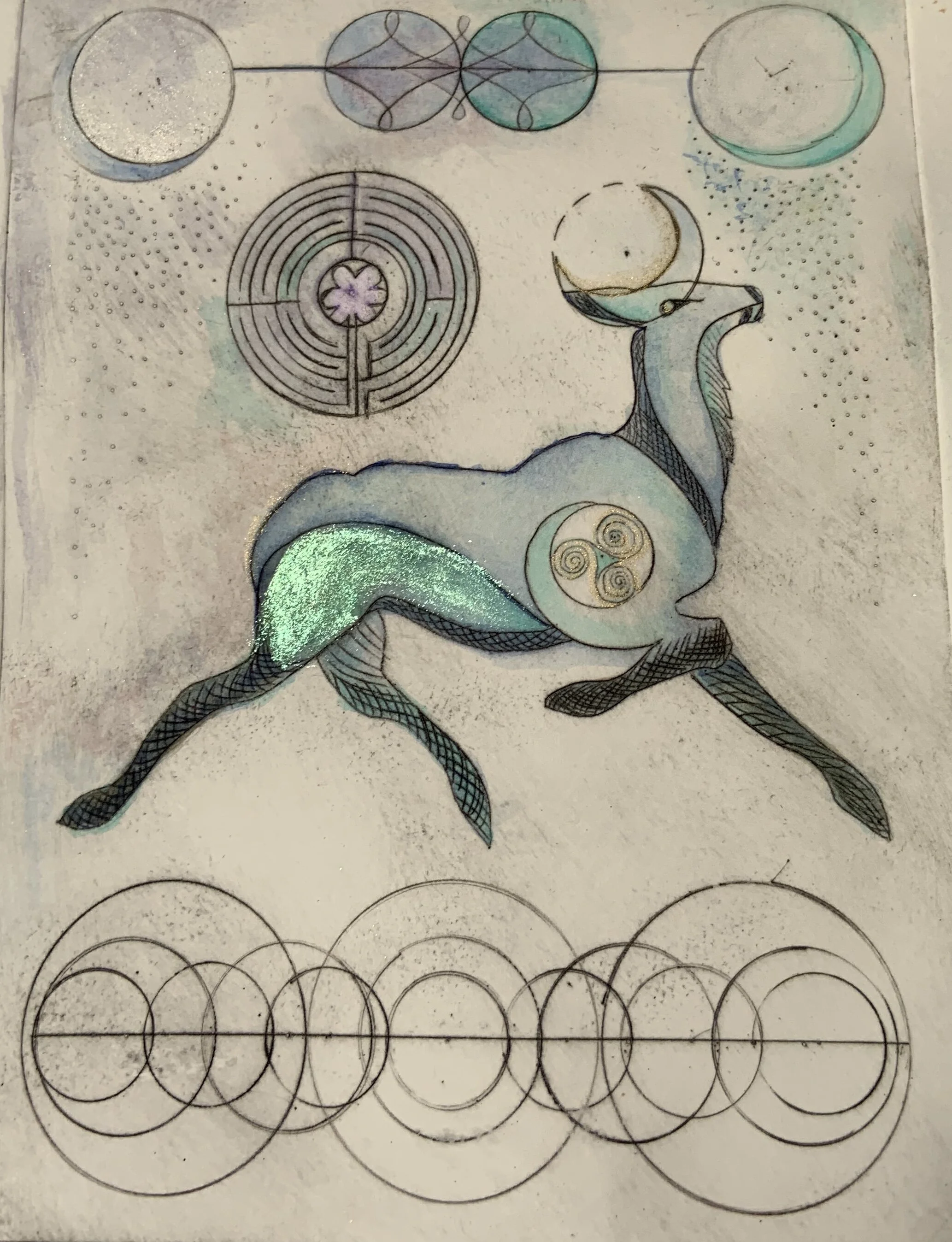Elk, acetate print with ink and iridescent pigment, approx. 8" x 10" SOLD