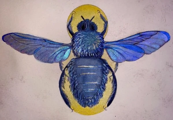 Bee, acetate print with watercolor and iridescent pigments, approx. 8" x 10" SOLD